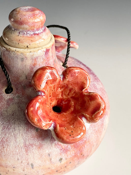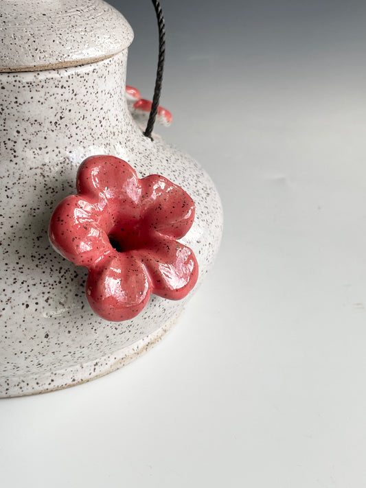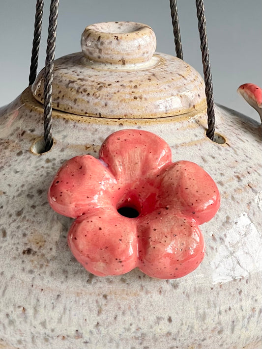 Hummingbird Feeder: Cream/pink with 3 red flowers