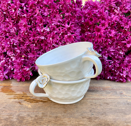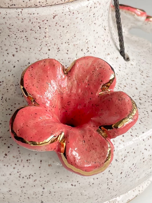 Hummingbird Feeder: White with 3 pink flowers and gold