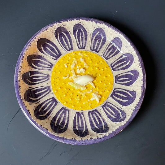 Purple Sgraffito Flower Ceramic Grater 2