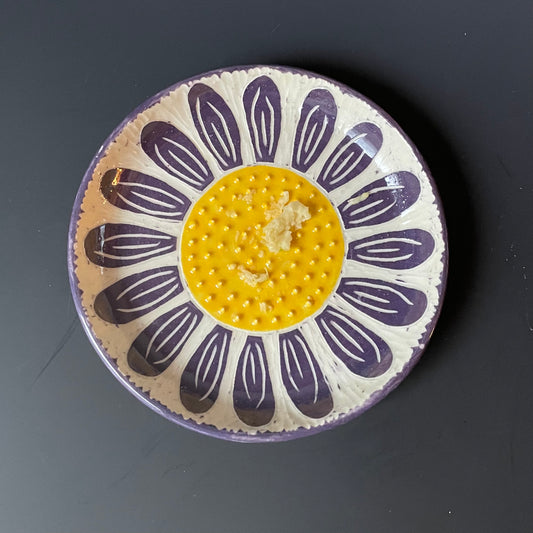 Purple Sgraffito Flower Ceramic Grater, no speckles
