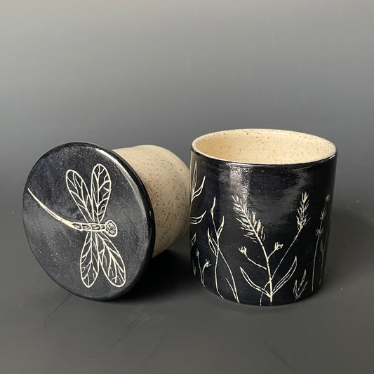 Sgraffito Dragonfly Design Butter Keeper