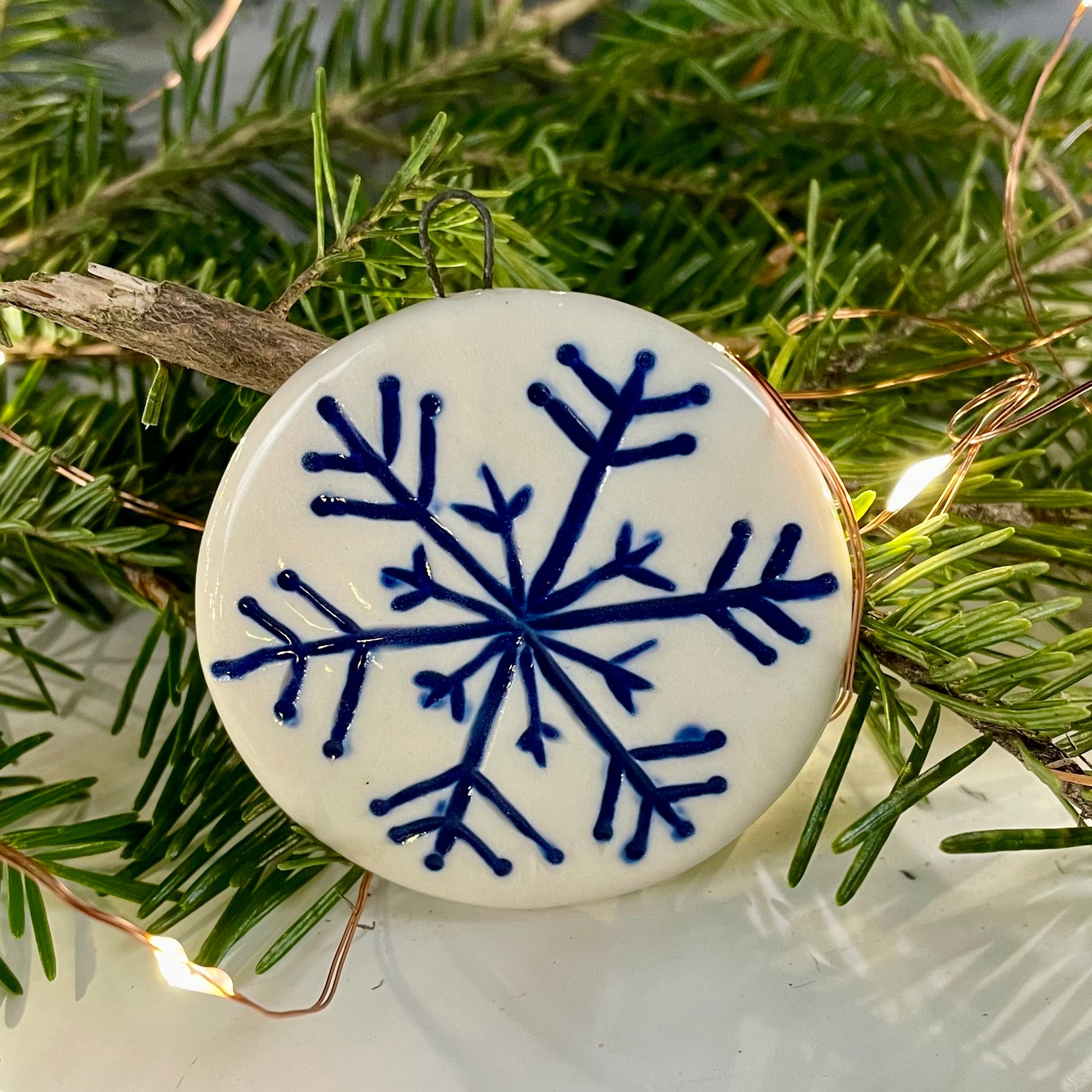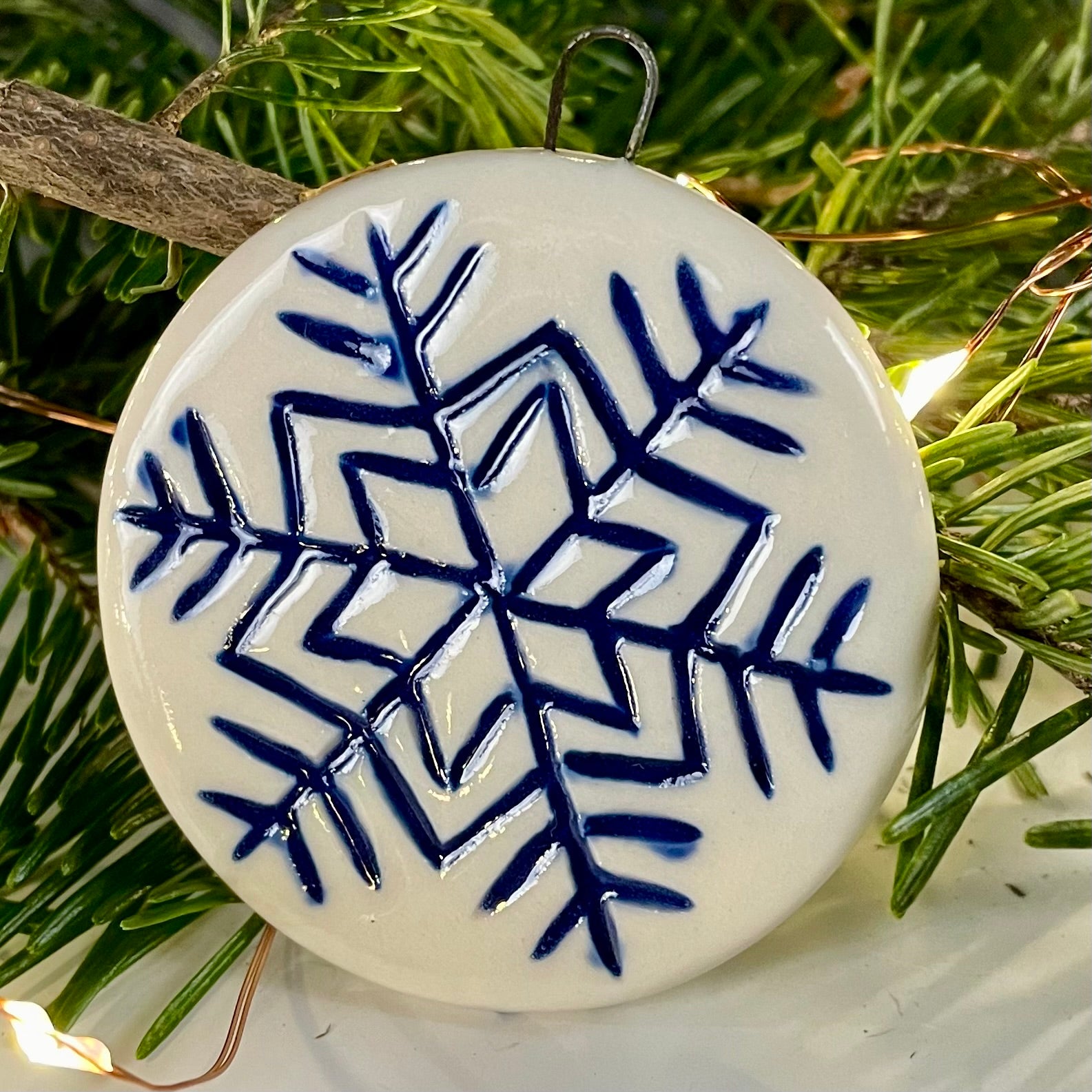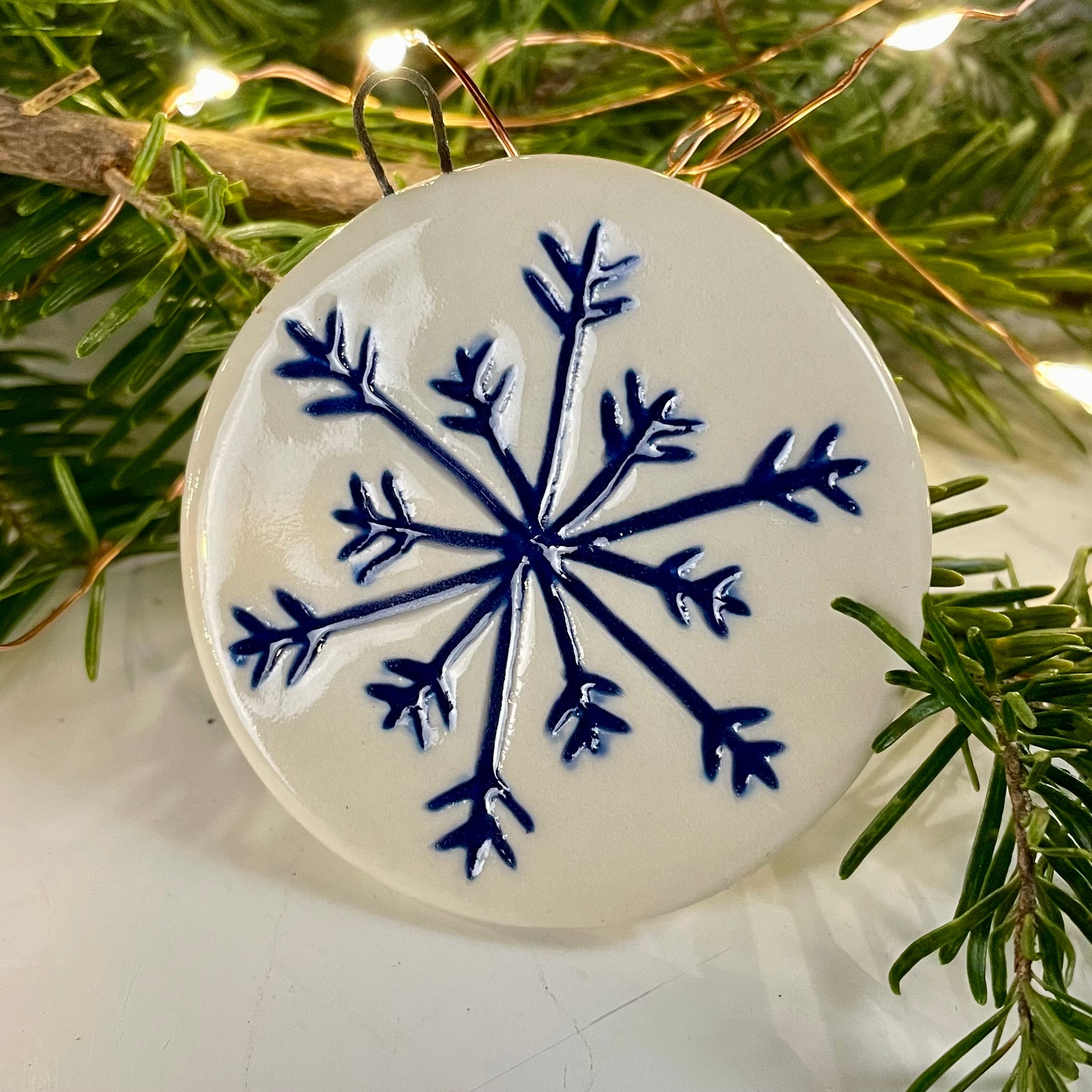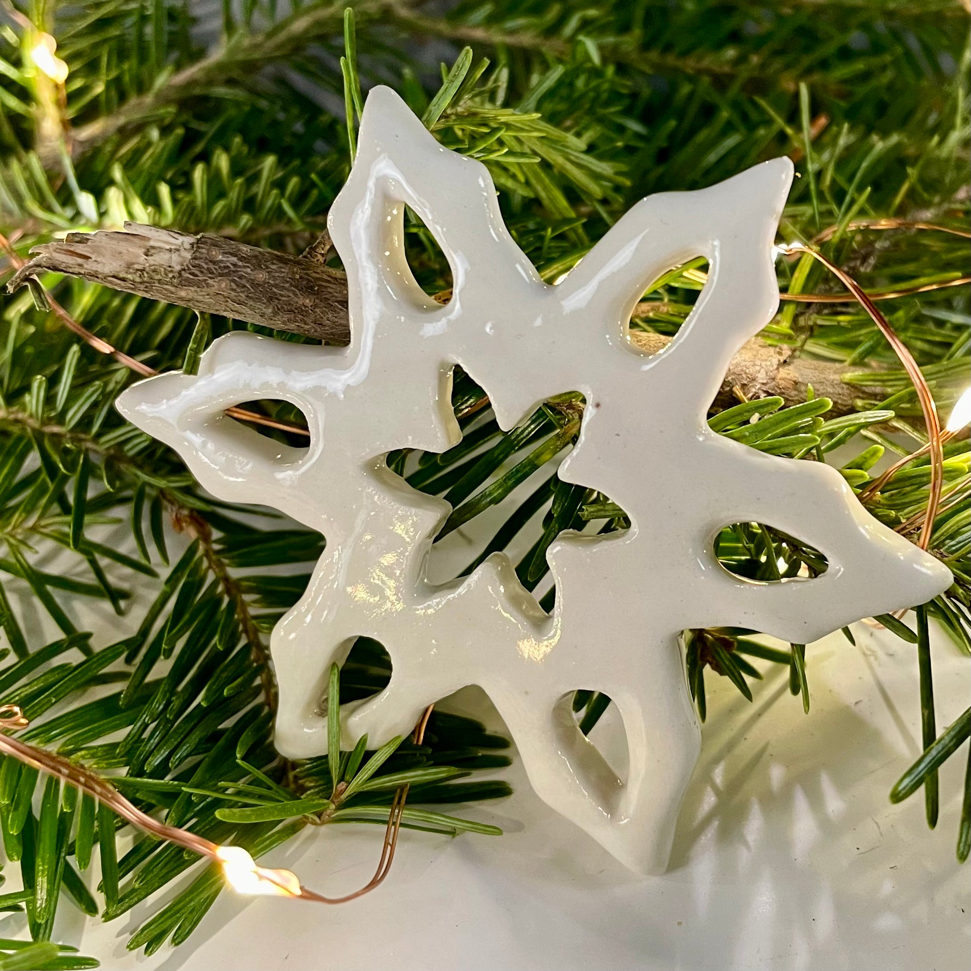 Handmade Ceramic Ornaments. These ornaments were handmade and then pierced and carved when leather hard. They were then bisque fired, glazed and then fired one last time to this finished product.