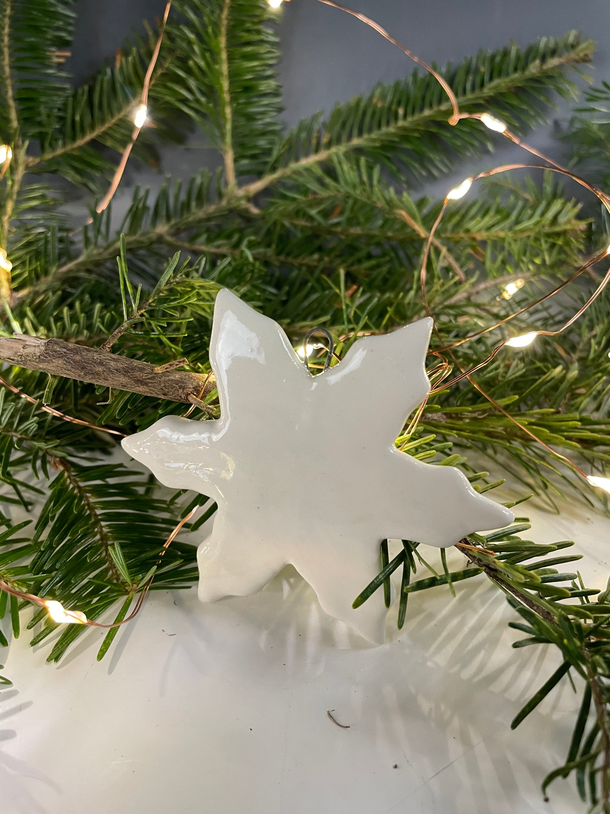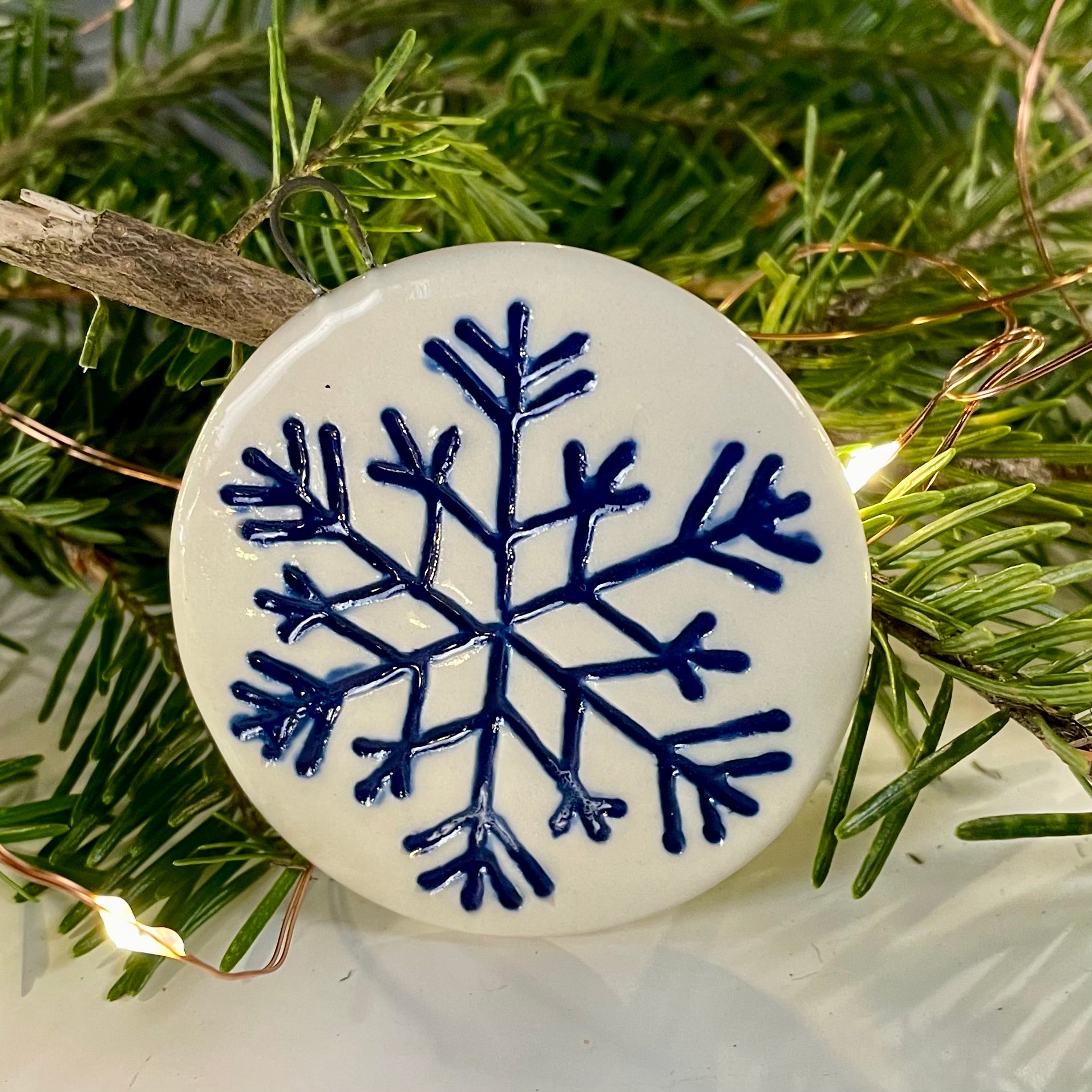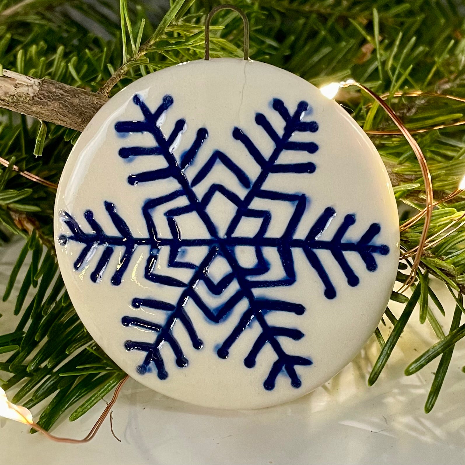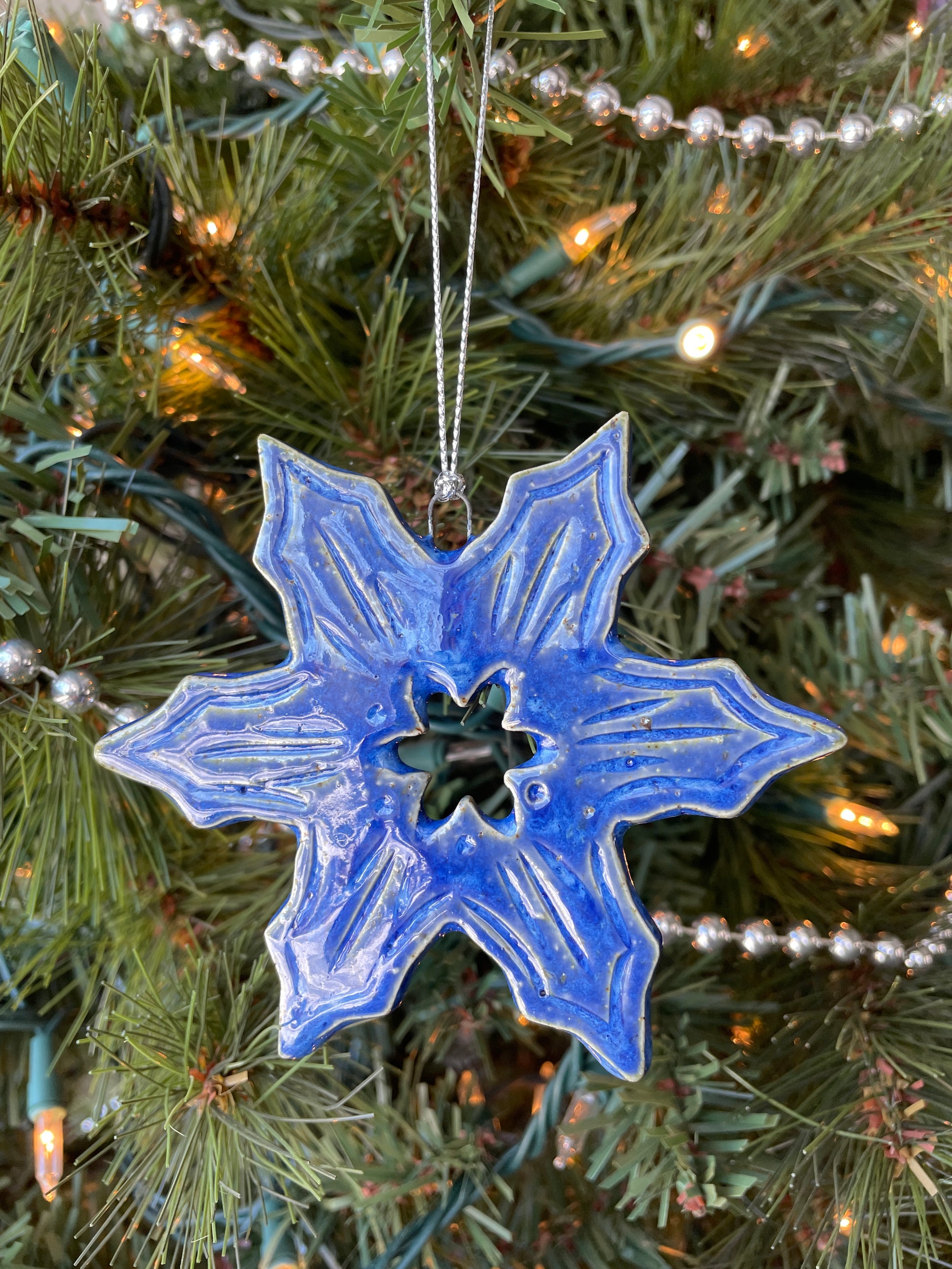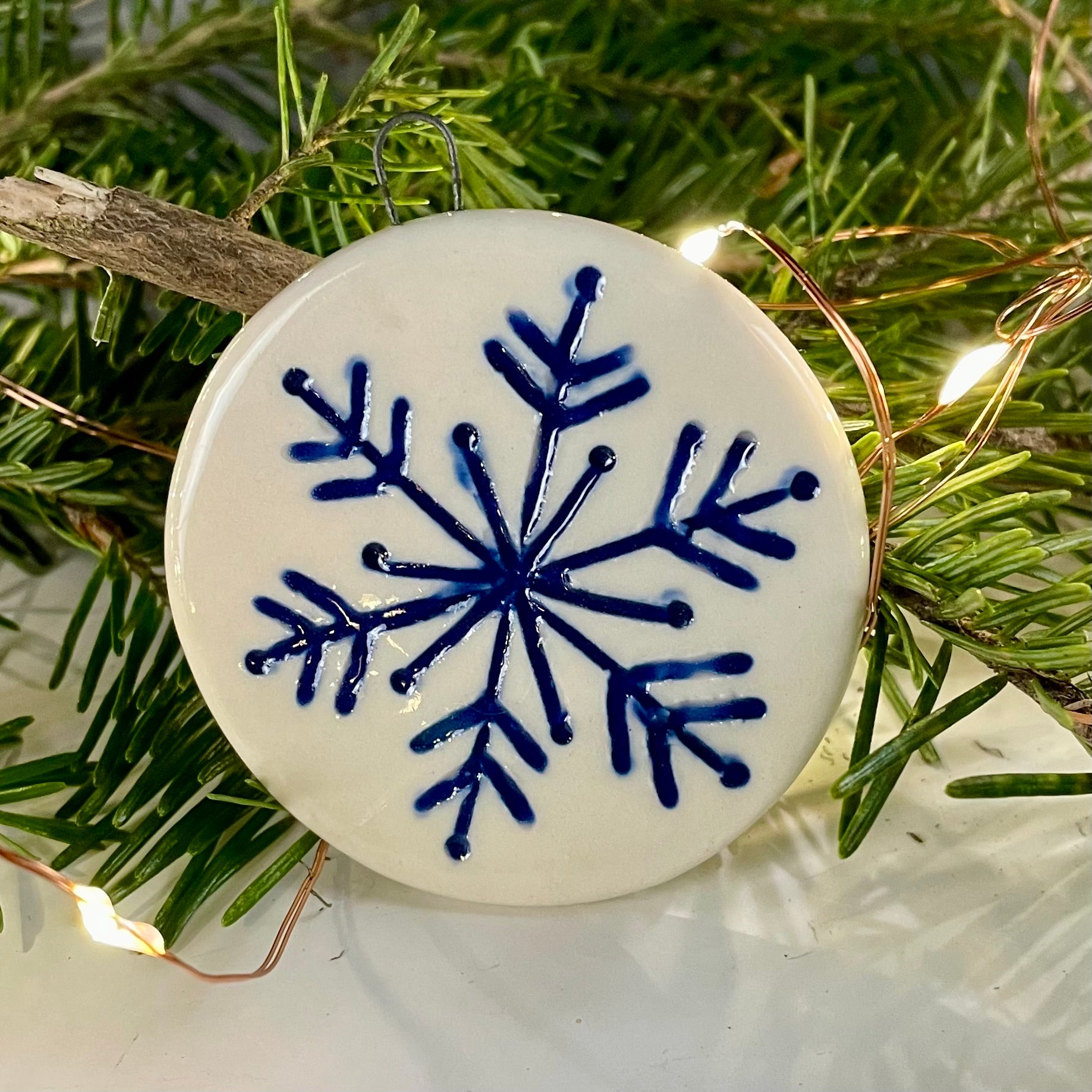 Handmade Ceramic Ornaments. These ornaments were handmade and then pierced and carved when leather hard. They were then bisque fired, glazed and then fired one last time to this finished product.