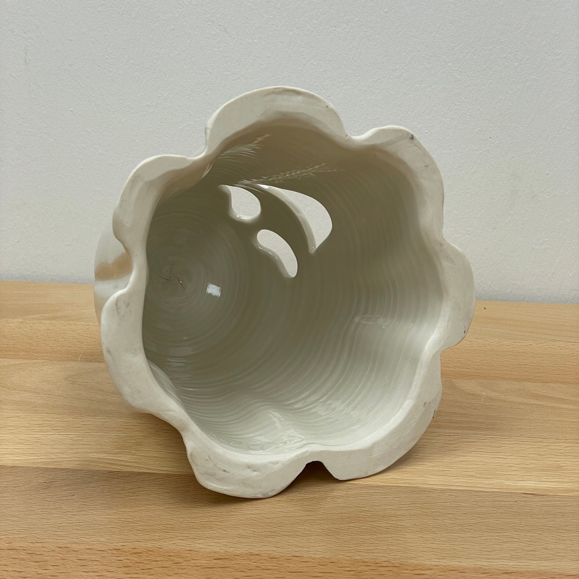 Porcelain ghost thrown on the wheel, altered and pierced.