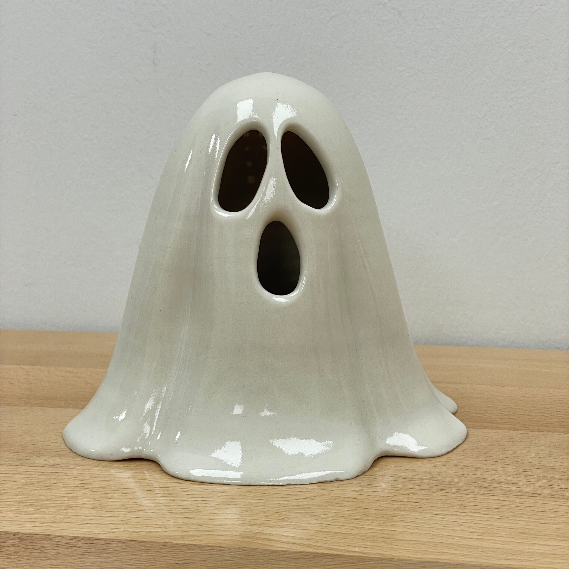 Porcelain ghost thrown on the wheel, altered and pierced.