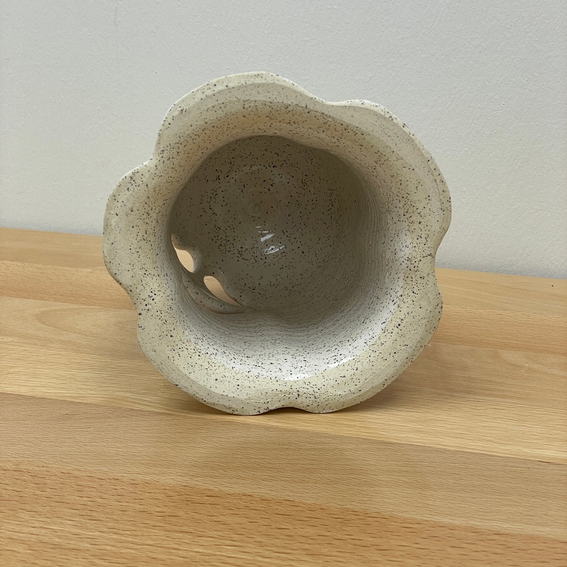 Made of speckled stoneware clay and glazed white.