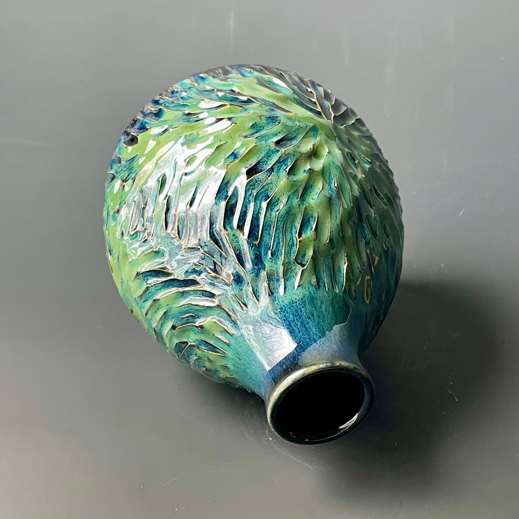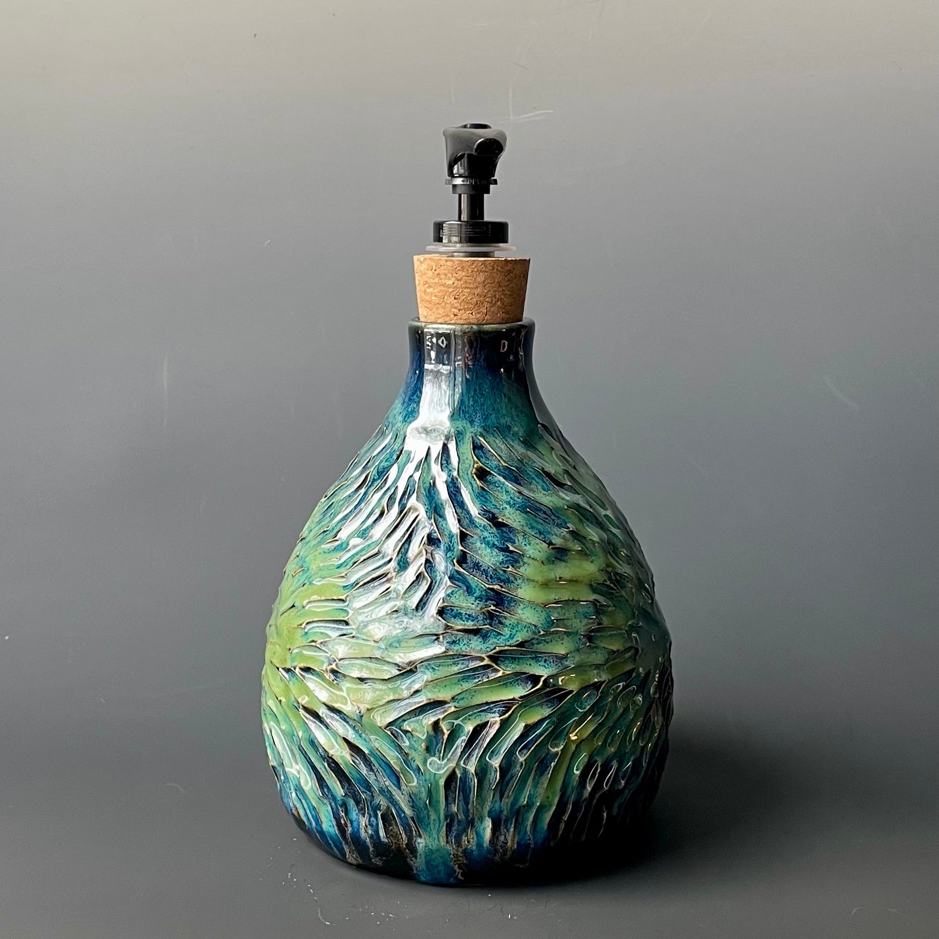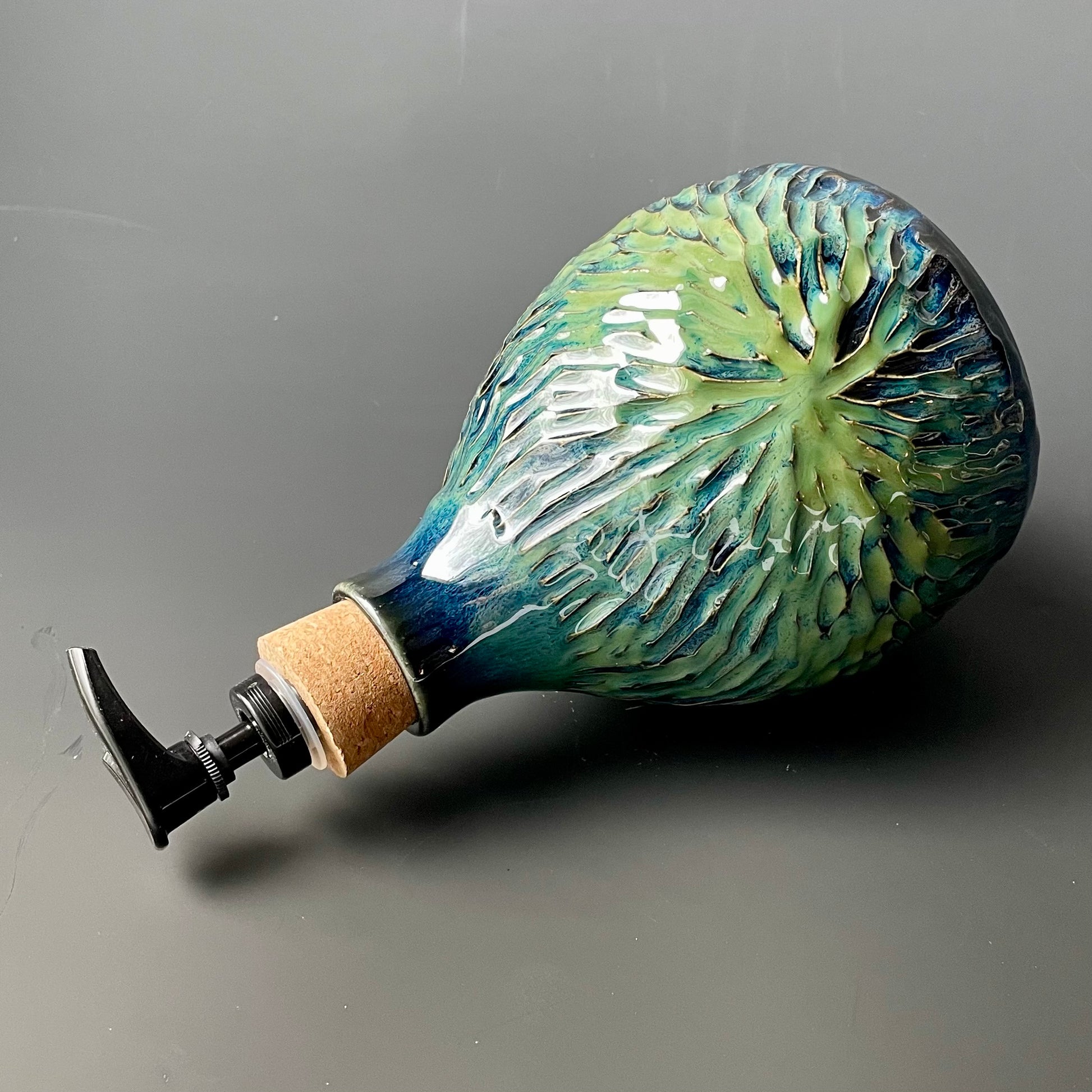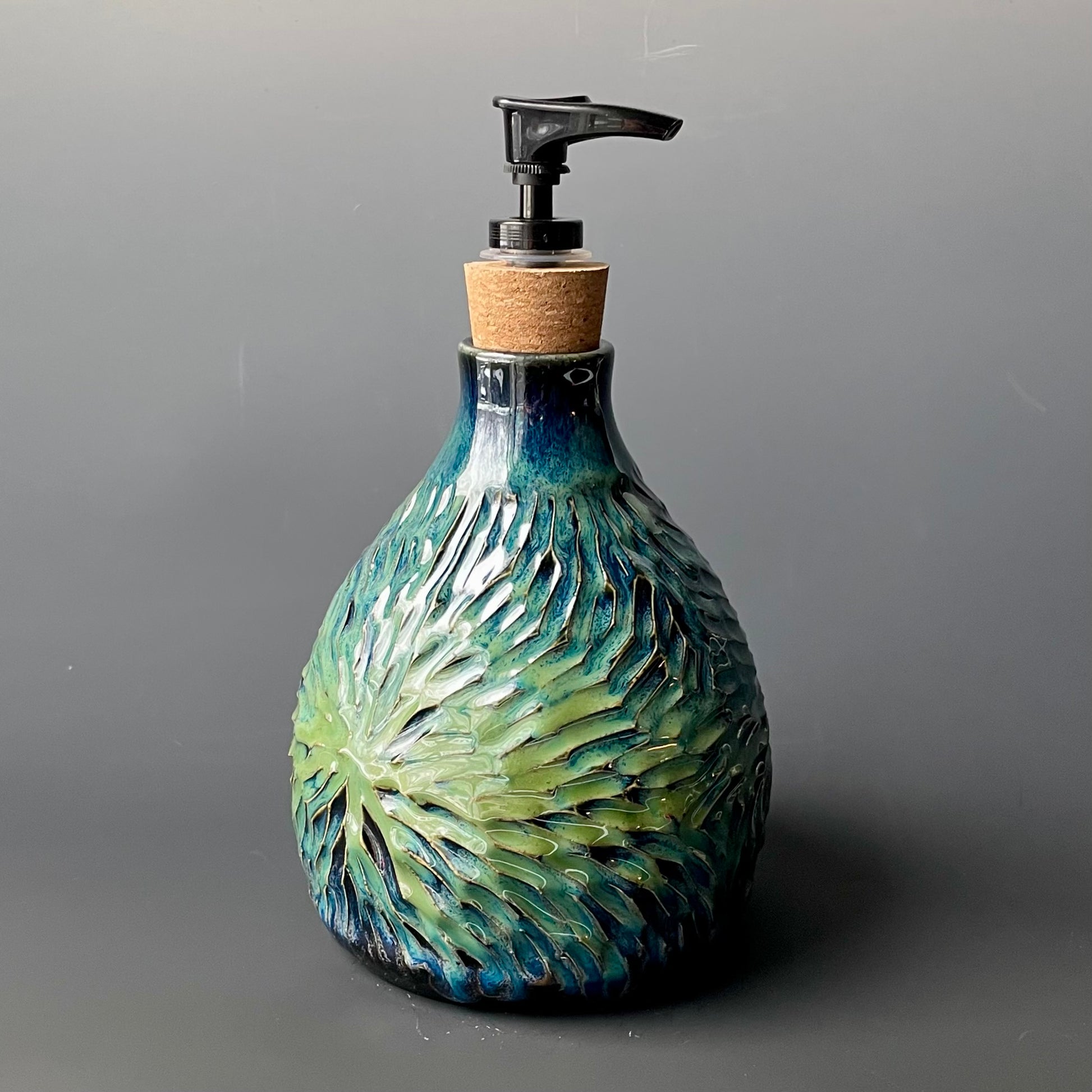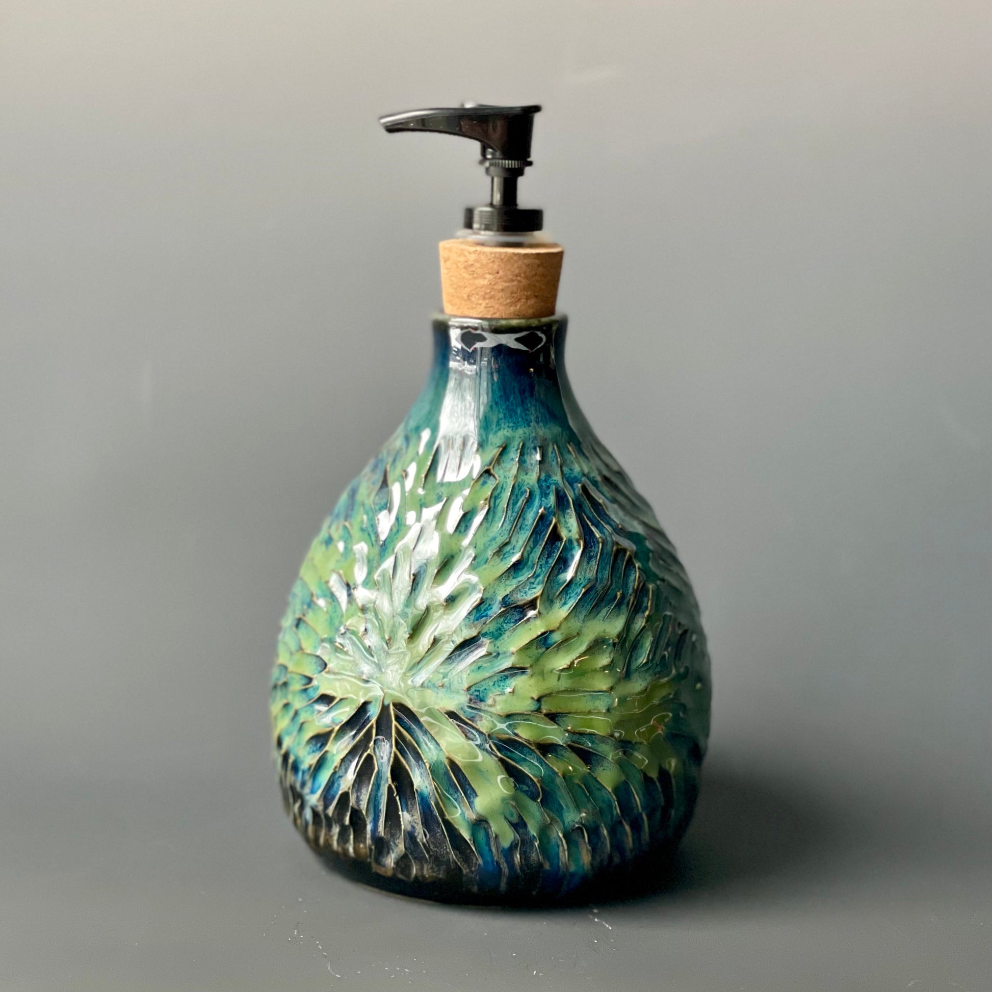 Carved Blue & Green Soap Dispenser