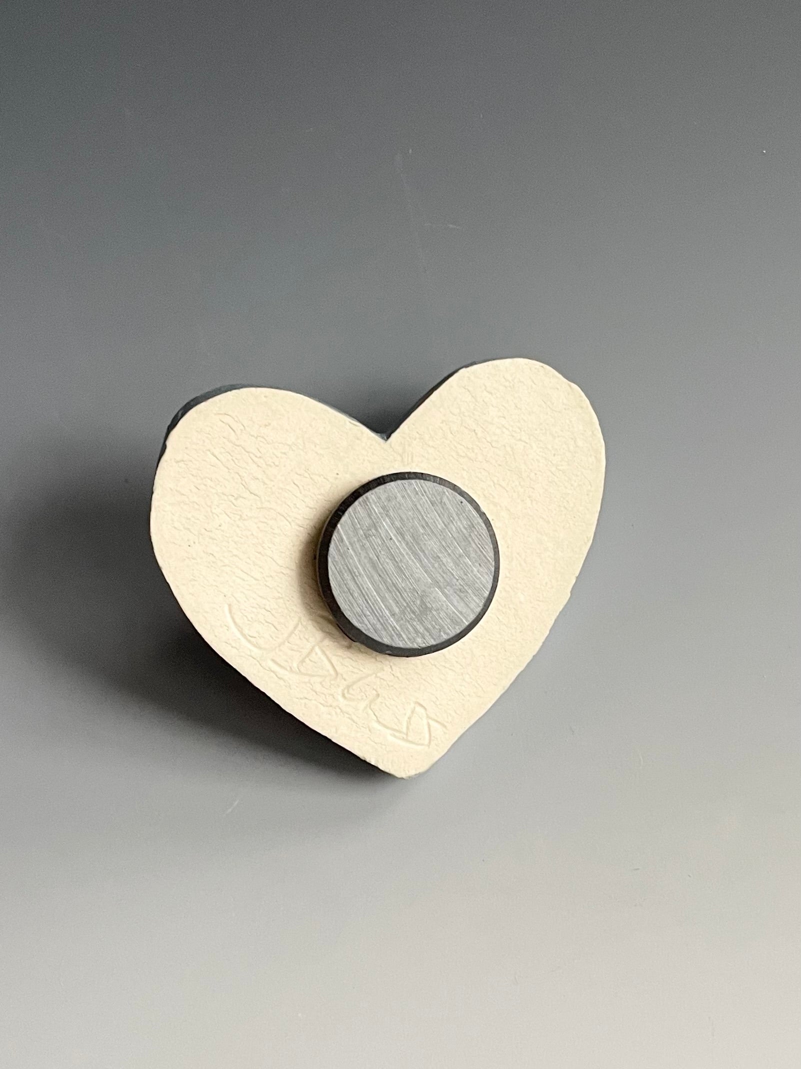 These heart magnets are hand-built. The 2 pieces are cut from a slab, then joined together to form a pocket. The pocket can hold an air plant, jewelry, or any other trinket you can think of.