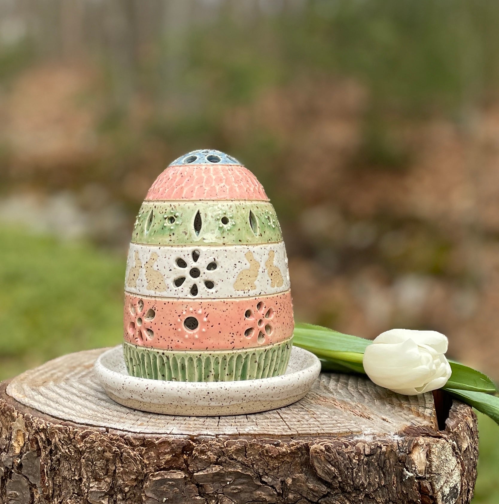 Whether you wish to decorate your entryway, kitchen, living room or dining room for the holiday, this wheel-thrown Easter Luminary is sure to compliment your home decor and bring some spring in the air. It also makes nice light reflections in a darker room.